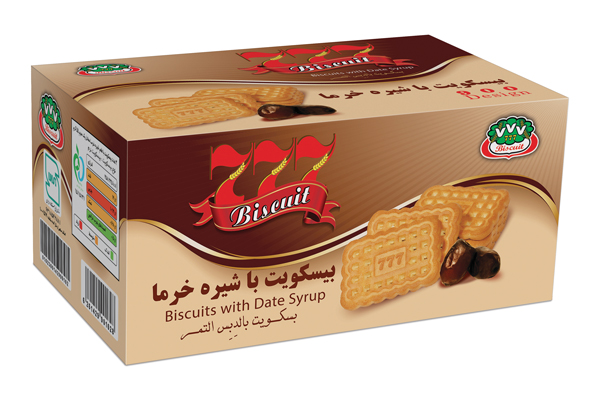بیسکوییت شیره خرما 777 که یکی از محبوبترین محصولات این برند هست در قالب پنجره، با طعم شیره خرما و با وزن 780 گرم تولید میشود