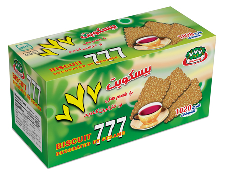 بیسکوییت 1020 هل و کنجد 777 که در قالب قلبی و وزن 900 گرم تولید میشود، از بیسکوییت های خاص و پرطرفدار 777 است.