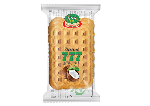 بیسکوییت 2 عددی 777 که در قالب پنجره تولید میشود، با بافت ترد و سبک و طعم دلپذیر نارگیل، میانوعدهای ایدهآل برای هر زمان از روز شماست.